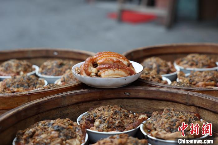 “我们做的扣肉,色、香、味比较独特。”郭永权介绍,首先要把肥瘦相间的五花肉,煮上20分钟,捞出后在皮面上扎孔,接着炸至表皮金黄,用水泡软,再切片摆放碗中,铺上调好味的大头菜,用蒸笼蒸40分钟,“出锅后味道堪称‘极致美味’。”