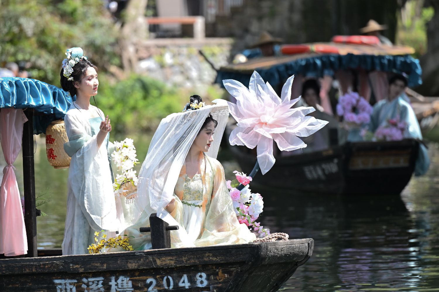 3月24日,“花朝杭州”春日行暨西溪花朝系列活动在浙江杭州西溪湿地启幕,“十二花神”水陆巡游呈现宋韵花朝节,缤纷烂漫的春日盛景吸引游客。