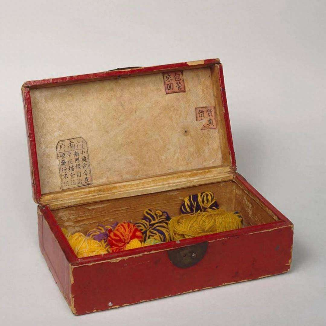 尽管展品说明中没有介绍这件红色漆盒的来源和更多背后的故事,但是眼尖的中国参观者在这件展品上发现了熟悉的中国字,在盒盖的内侧清晰可见三个印章,一个印章写的是:“河南府,中兴号今在南门里自造,牛皮描金箱柜,发行不换。”另外两个印章上写的分别是“包管来回”“货真价实”。