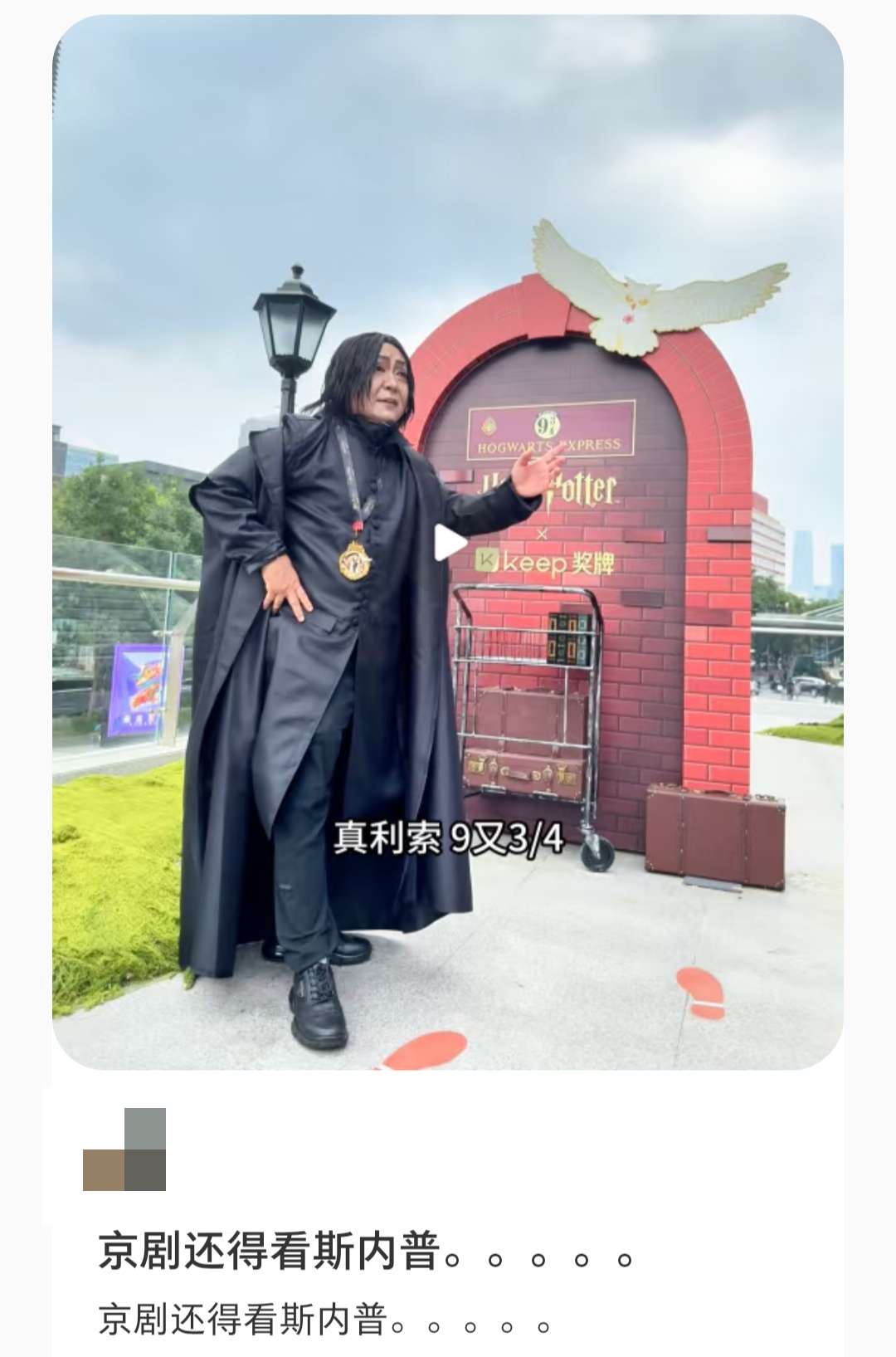 近日,一位cos成《哈利·波特》中斯内普教授的男子,在北京街头唱起京剧版《哈利·波特》,魔性的旋律不仅让路人纷纷驻足围观,更让话题#京剧还得看斯内普#迅速冲上热搜。