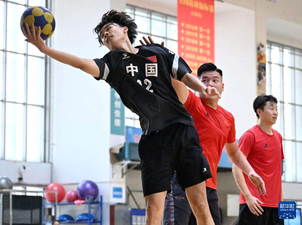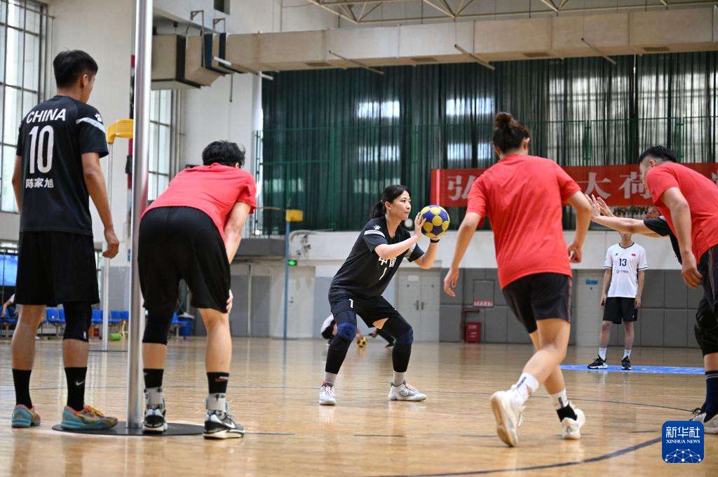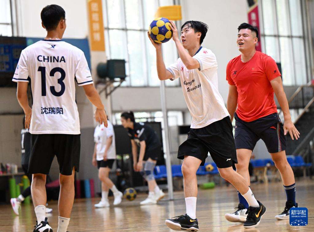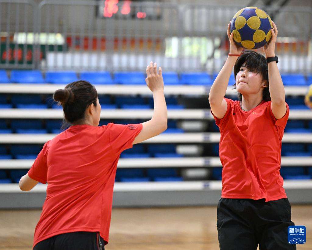 ▲中国国家荷球队球员在郑州大学集训时进行投篮练习(7月10日摄)。(图片来自新华社)