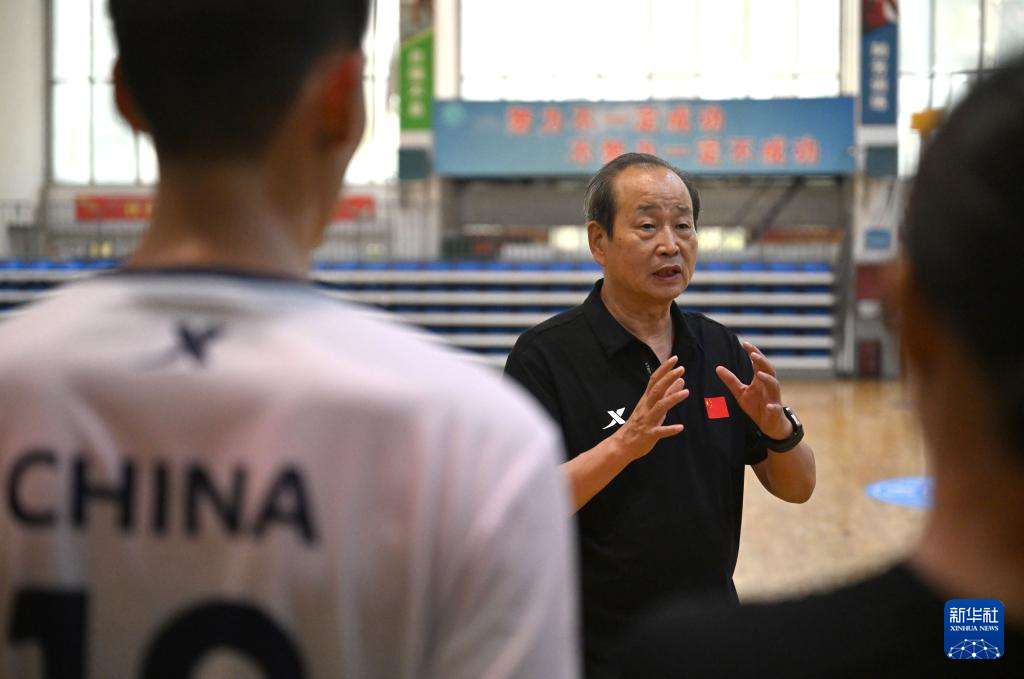 ▲中国国家荷球队主教练马襄城总结当日集训(7月10日摄)。(图片来自新华社)