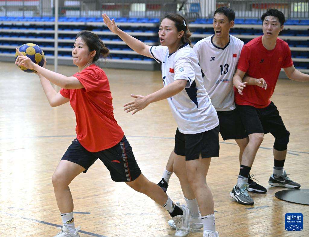 ▲中国国家荷球队球员在郑州大学集训时进行分组对抗练习(7月10日摄)。(图片来自新华社)