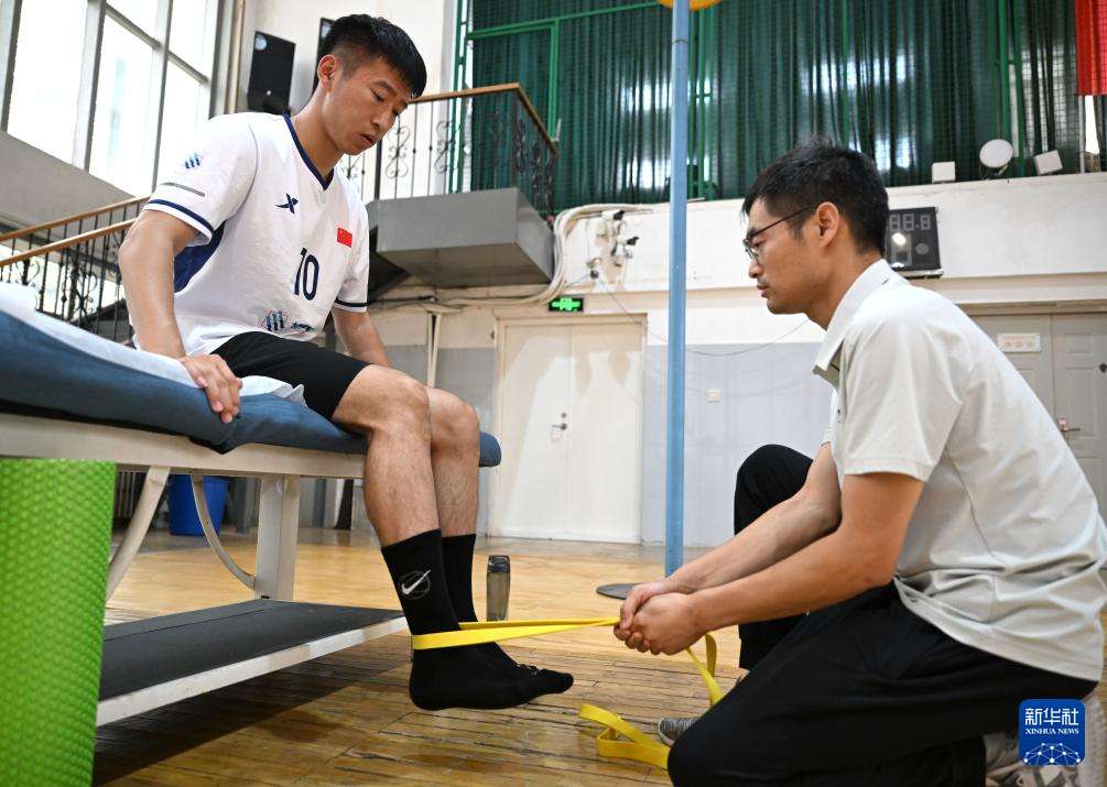 ▲中国国家荷球队球员在郑州大学集训时接受康复训练(7月10日摄)。(图片来自新华社)