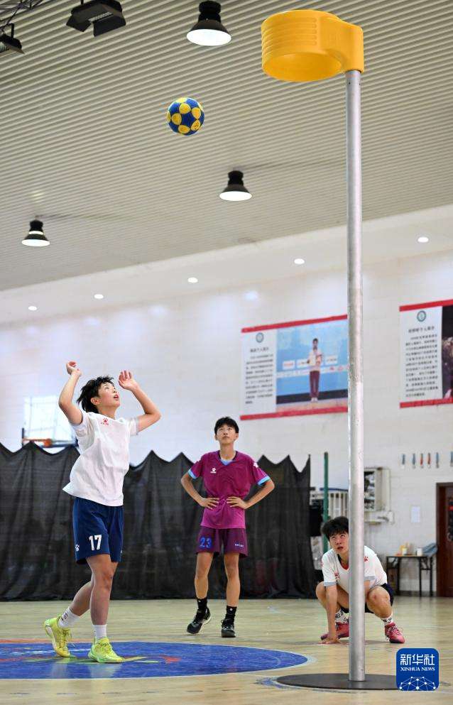 ▲郑州市第七十六中学荷球队球员在练习赛中(7月11日摄)。(图片来自新华社)