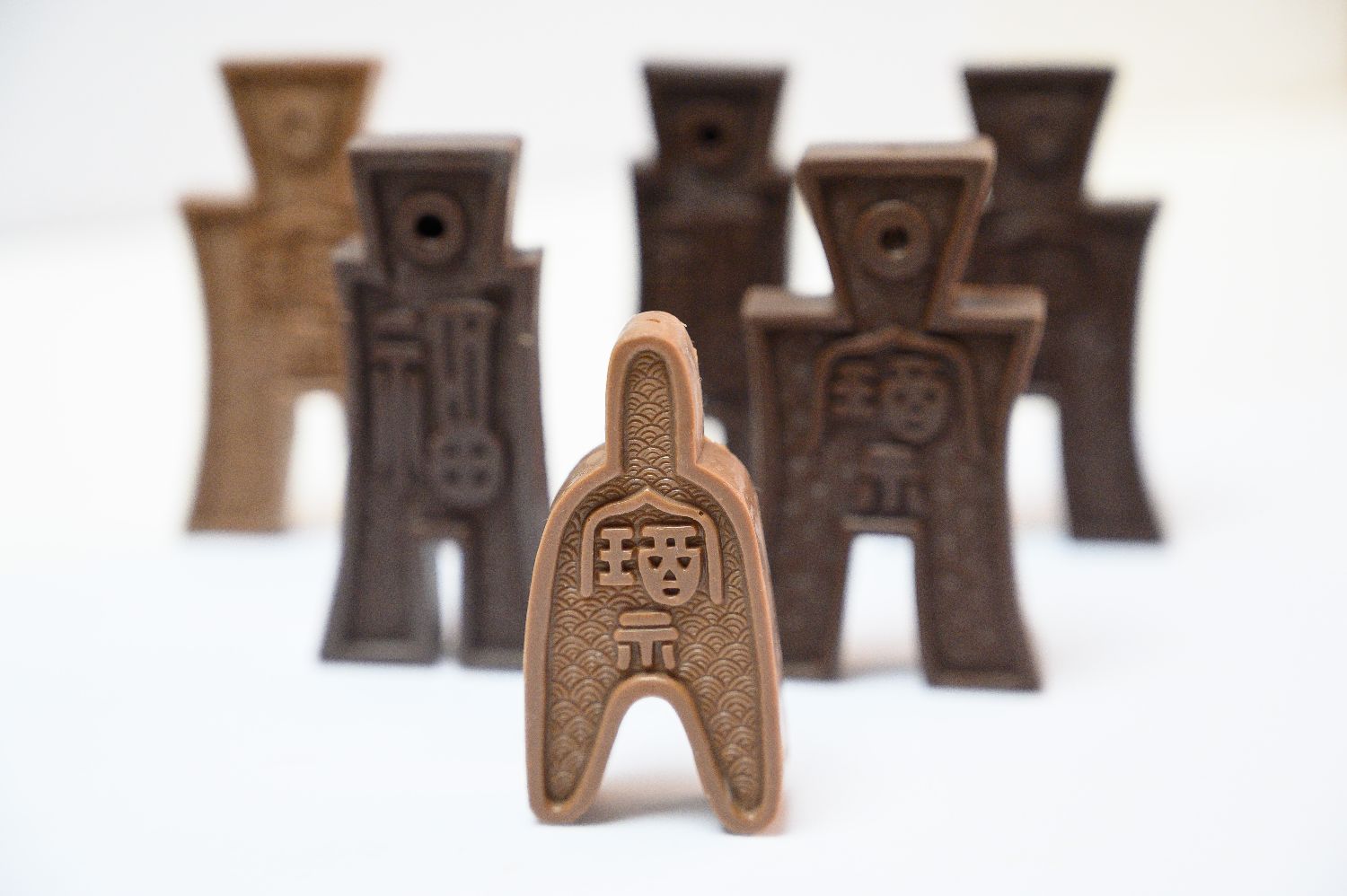 ▲2022年11月13日,山西省太原市,平面设计师孙晟设计制作的布币巧克力。(图片来自中新社)