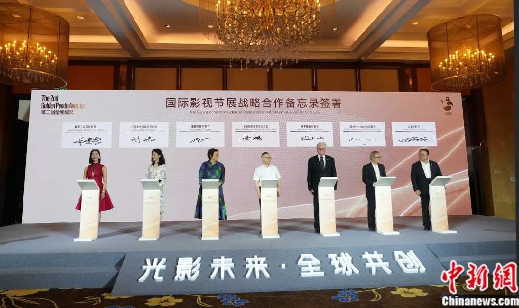 ▲2025年9月11日,“熊猫带你看世界”影视项目发布活动在四川成都举行。图为国际影视节展战略合作备忘录签署仪式。中新社记者 安源 摄