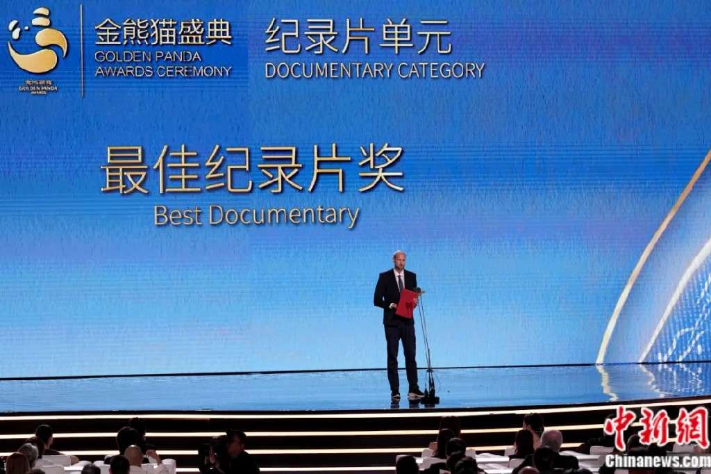 ▲2025年9月13日,金熊猫盛典在四川成都举行。《新荒野》获最佳纪录片奖,图为最佳纪录片奖颁奖现场。中新社记者 安源 摄