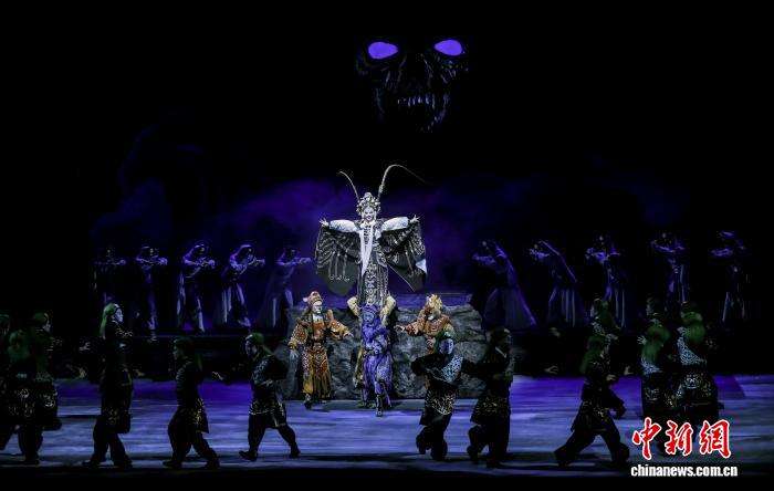 ▲9月17日晚,第十九届中国戏剧节展演剧目婺剧《三打白骨精》在浙江杭州上演。 (第十九届中国戏剧节组委会供图)