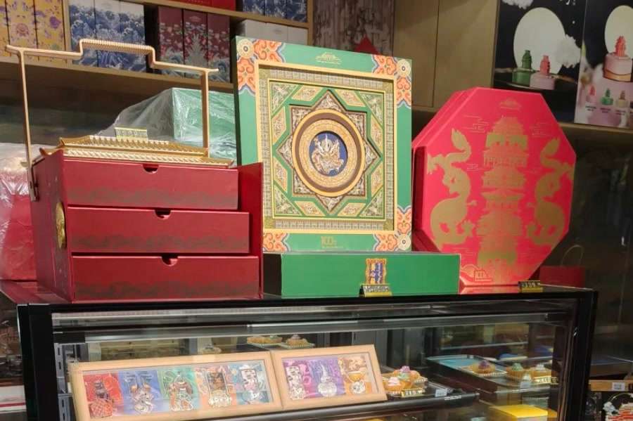 顶流“藻井”也从冰箱贴,跨界到了月饼上。故宫博物院神武门外,角楼咖啡店售卖的多款文创月饼已售罄。“养心殿蟠龙藻井月饼的销售很好,盒盖灵感是斗八混金盘龙藻井,整体几乎原样复刻了养心殿藻井的造型,蟠龙口衔宝珠,呈现威严与灵动的美感。”一位店员说,“月饼馅料也注意尽量采用低糖,更健康。有些游客会选择通过网店下单,直接将月饼寄回家。”