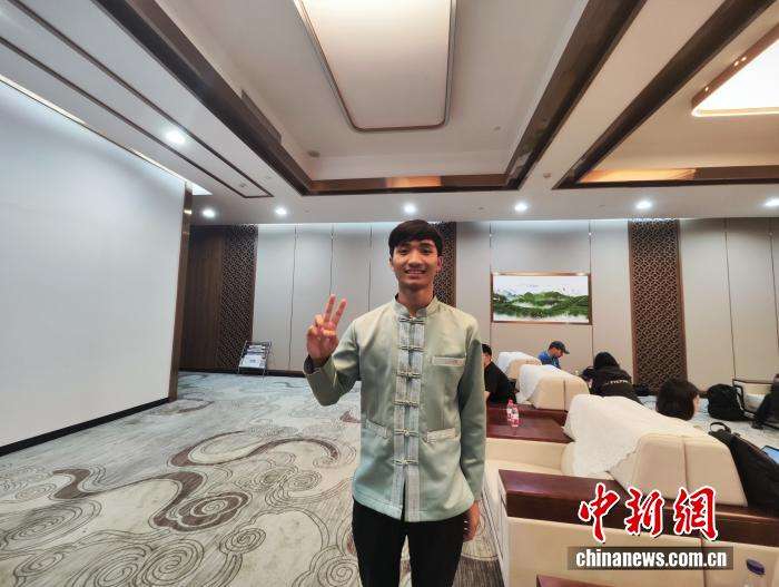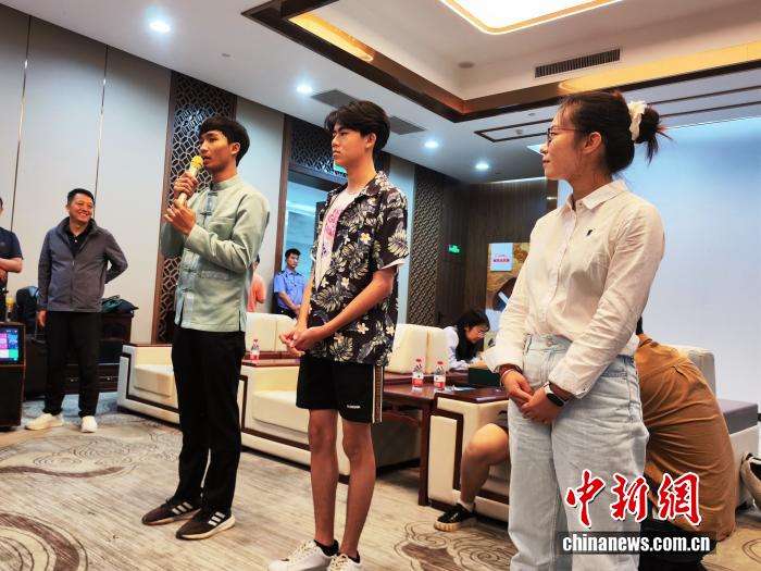 ▲普洱学院师生向记者团成员讲述跨国留学故事。图为老挝留学生威来赛。中新网刘越摄