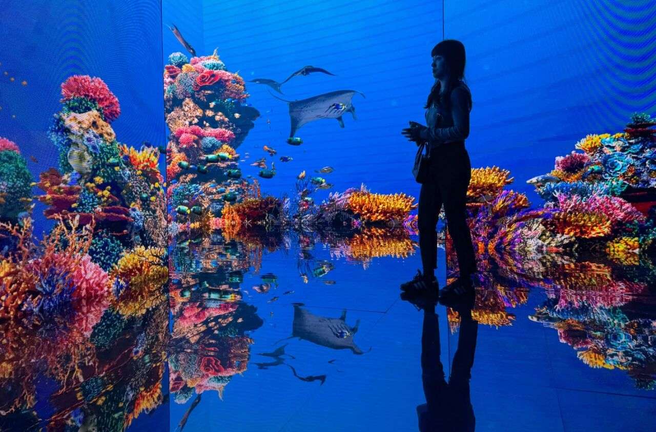 ▲2025年6月27日,“无限之海——沉浸式AI数字艺术展”在青海省会西宁开展,吸引民众现场体验。中新社记者 马铭言 摄