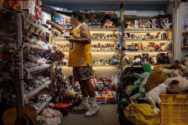 ▲8月21日,北京,一名年轻人正在一家二手商店的玩具区“淘宝”。对不少年轻人来说,除了性价比,二手商品的稀缺性和独特性也是他们选购时考量的重要因素。姚沐含/摄