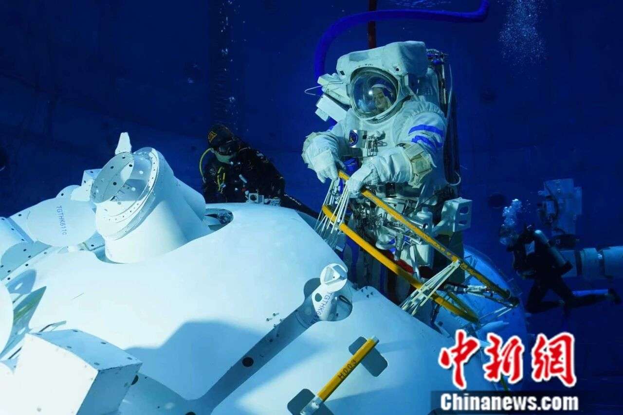 ▲图为王亚平在水下进行出舱训练。徐部 摄