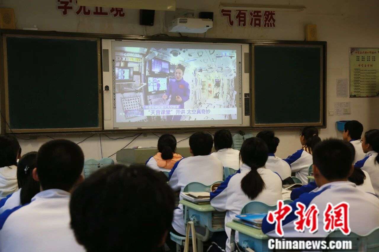 ▲2021年12月9日,中国空间站首次太空授课正式开讲。图为航天员王亚平家乡学生收看太空授课。中新社记者 王娇妮 摄