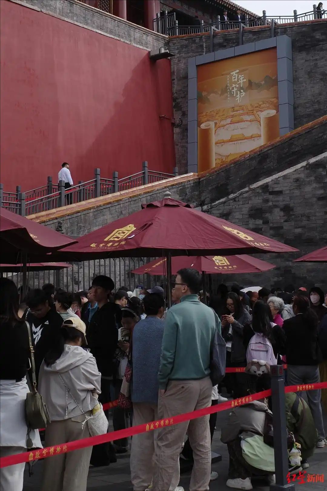 ▲观众在午门下排队等待进入参观特展。(图片来自在红星新闻客户端)