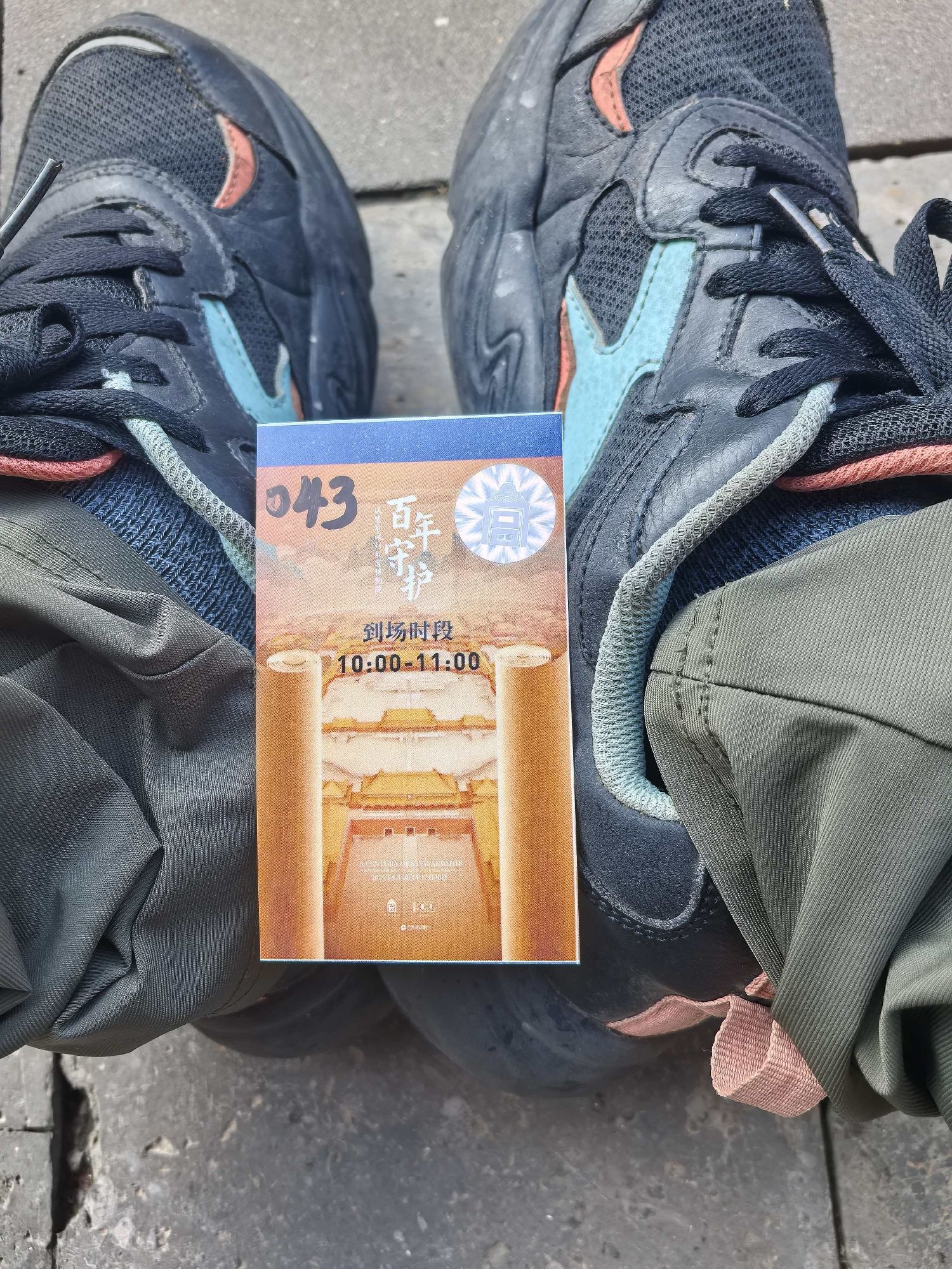 ▲故宫为参观百年特展的游客发放牌子。(图片来自游客供图)