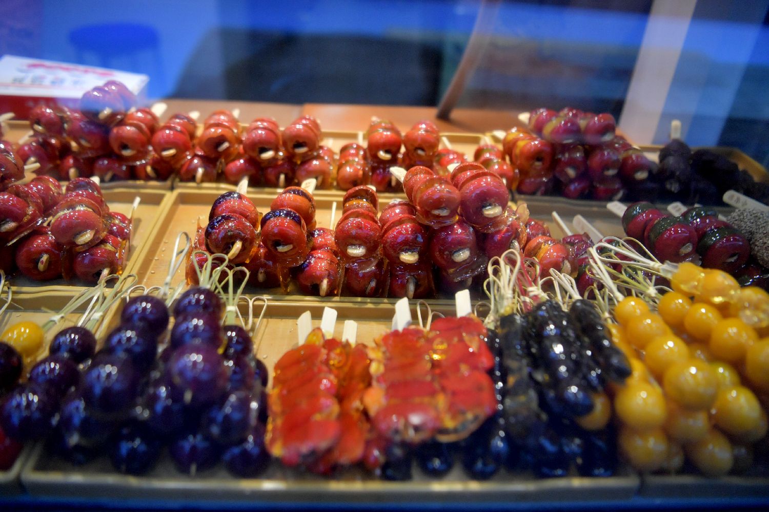 ▲图为长春一商家售卖的由葡萄、菇娘、蜜枣制作的冰糖葫芦。(图片来自中新社)