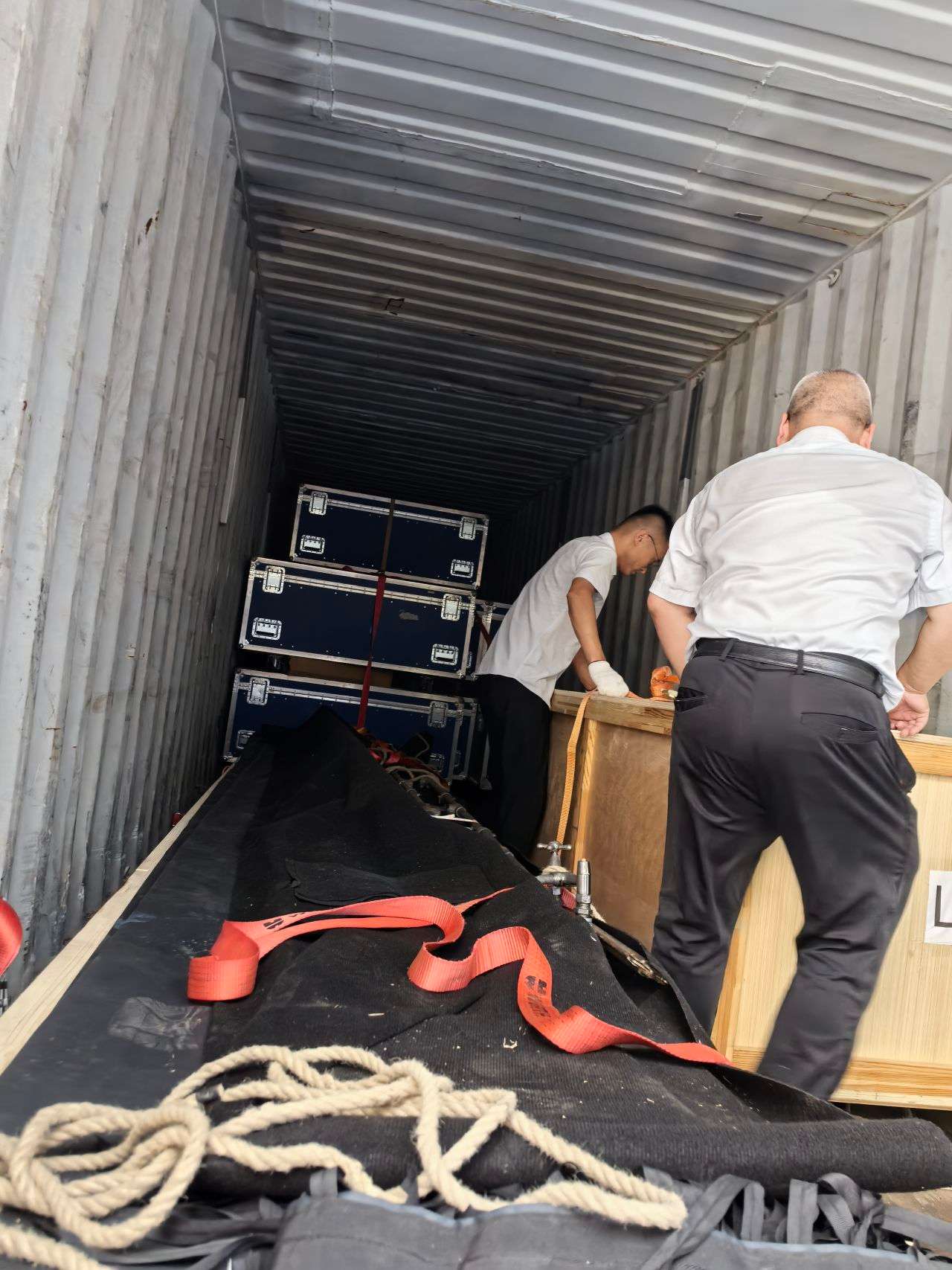 ▲金红峰和同事在为剧组搬运舞美道具。(受访者供图)