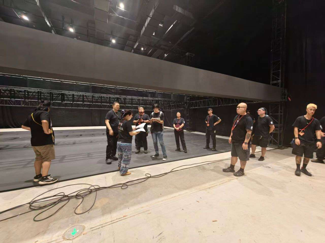 ▲剧场经理苏德祥和同事们正在进行演出前的准备工作。(受访者供图)