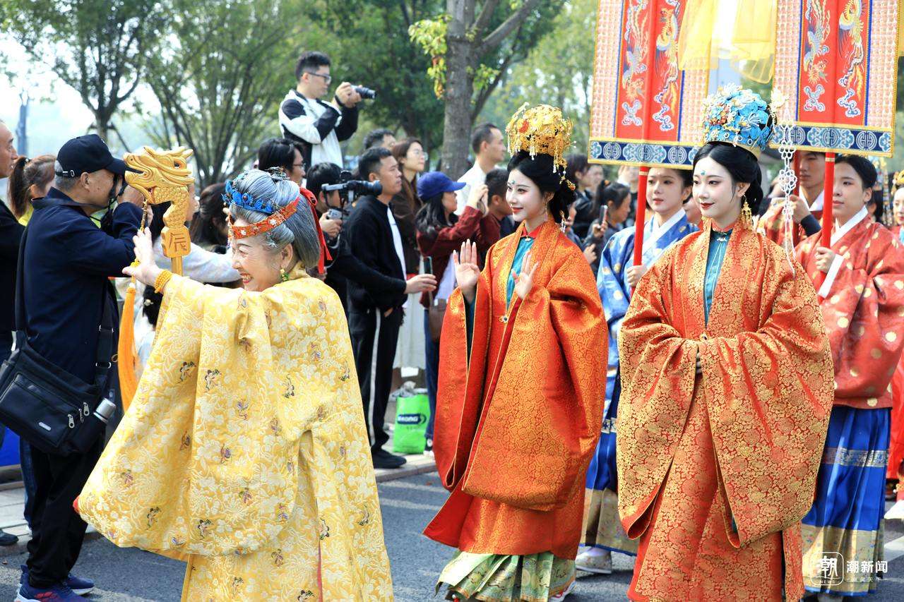 马面裙的灵动、曲裾的优雅、圆领袍的洒脱,各朝服饰如流动的史诗般,在活动中徐徐铺展。“今年感觉大家对妆造都更专业了,我穿的就是明代的服饰,戴的这个冠叫百鸟朝凤。”来自常州溧阳的汉服爱好者十一,曾经来参加过一次西塘汉服文化周的活动,这次也参加了方阵展演环节。