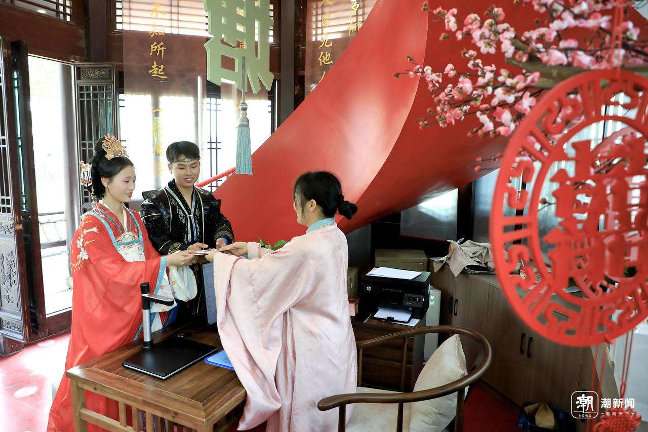 “把婚姻登记点开进景区,形成‘甜蜜效应’。”嘉善县民政局相关负责人表示,今年婚姻登记“全国通办”直接取消了管辖地限制,也带火了各地有特色的婚姻登记点。而近年来,西塘古镇“水上婚礼”等自带汉服元素的活动,正不断吸引越来越多有情人来到这处千年水乡,感受汉服婚礼的风华韵味。嘉善这次将婚姻登记点搬进景区,不仅是为了延续传统文化的浪漫,也希望能与景区内的旅游业态联动,推动发展“甜蜜经济”,给新人营造独特、富有纪念意义的登记体验。