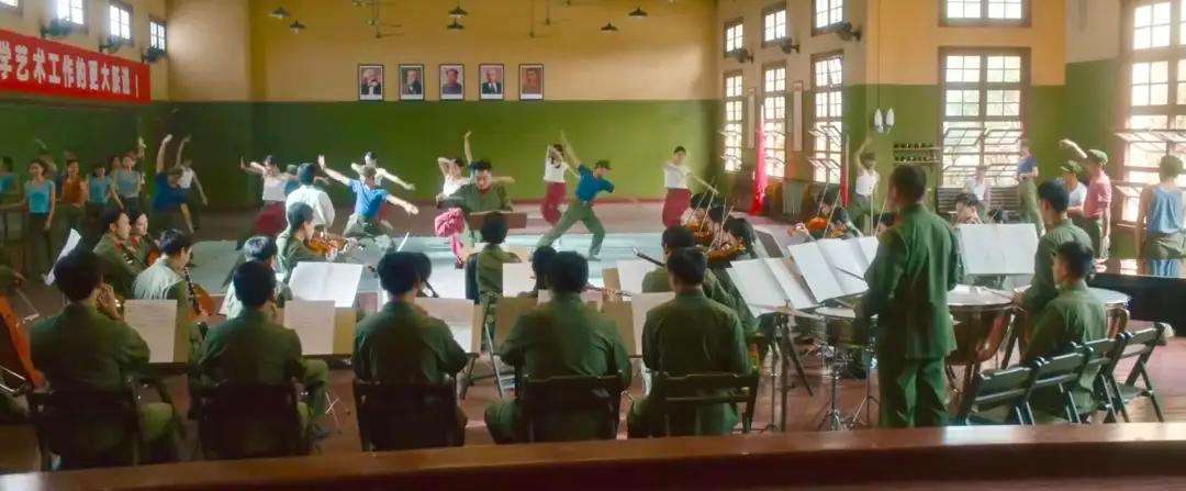 不过,墙面半白半绿并不绝对,有时候墙体上半部分也可以是其他颜色。电影《芳华》讲述的是20世纪70年代文工团的故事,文工团排练教室墙面上半部分就是黄色。