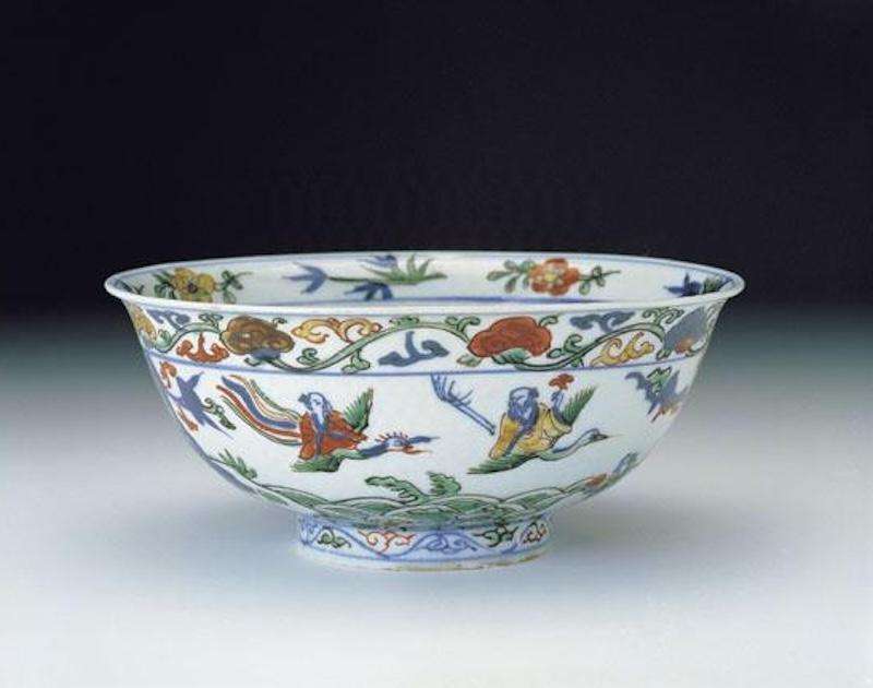 台北故宫展出了17件明代文物,包括明孝宗坐像、祝允明书千字文、明成化窑斗彩鸡缸杯等书画和瓷器。