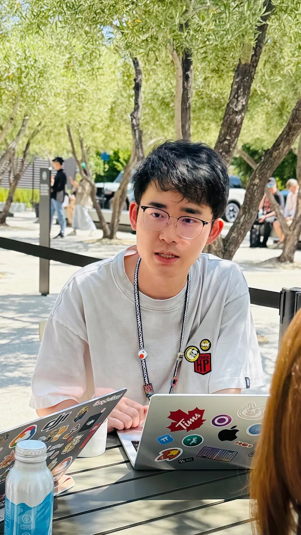 当业界还在讨论虚拟现实的可行性时,他的目光已投向更前沿的“空间计算”,并催生了虚拟化学实验室App《炼金术师》。他从设备的真实渲染能力中获得灵感,萌生了将完整实验室“搬进”用户卧室的大胆想法——通过摆放虚拟的烧杯与试剂,让使用者能亲手混合并观察沸腾、炸裂或变色等化学反应。于是,他与曾经的大学室友共同将这一构想变为现实,在用户眼前呈现出一张真实的实验桌,让那些通常需要昂贵设备和特定场所的复杂化学实验,变得触手可及。这个项目不仅获得了2024年中国高校计算机大赛移动应用创新赛启航赛道的一等奖,更让他登上了WWDC(苹果全球开发者大会)的舞台,并与苹果公司CEO蒂姆·库克见面,完成了一次从兴趣到专业的闭环。