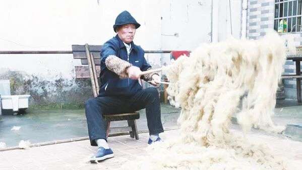 一顶乌毡帽,从原料开始就很讲究。首先挑选当年的湖羊,剪下羊毛,除去杂质,掺入田里的干泥,土法脱去油脂。