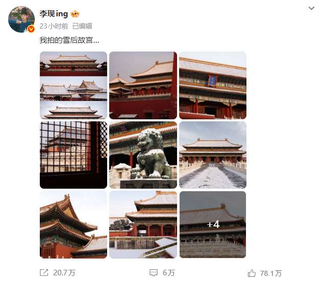 比如,为什么故宫门票又没了;为什么那么多人站在寒风里,对着红墙白雪反复拍;以及,为什么有人在宫里拍到了李现。