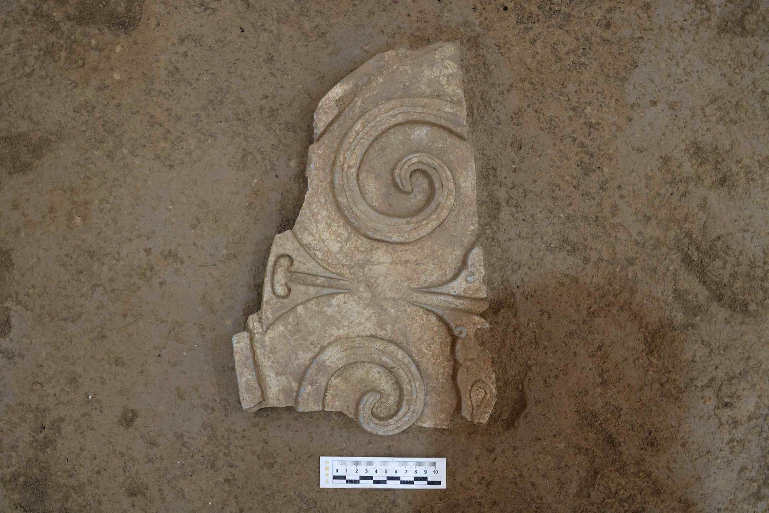 ▲资料图为2021年8月22日拍摄的巨型瓦当残块。(中新社发 阿房宫与上林苑考古队 供图)