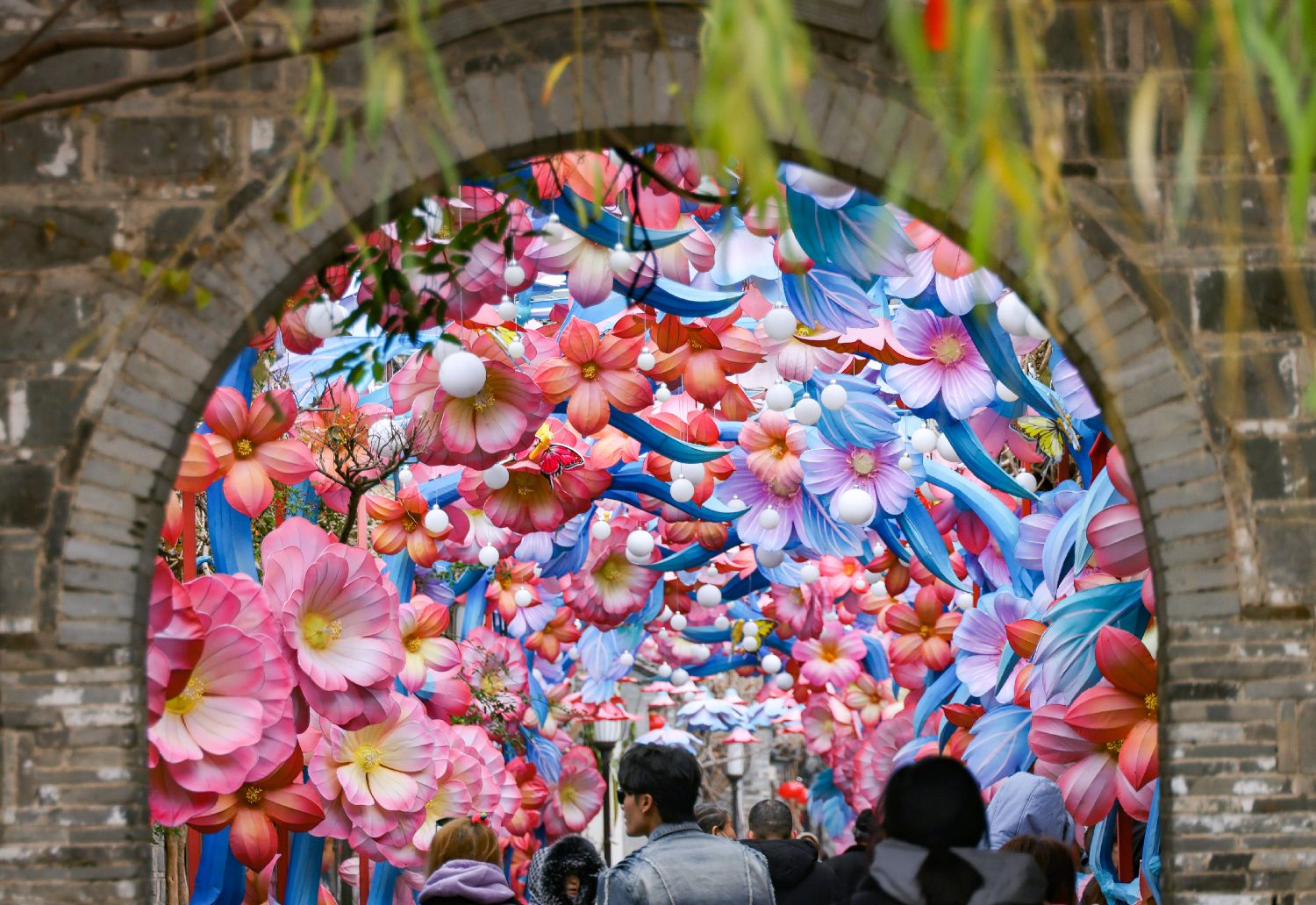 1月6日,江苏南京,工作人员在城南老街上安装大型彩灯,营造喜庆氛围,迎接农历马年的到来。中新社记者 泱波 摄