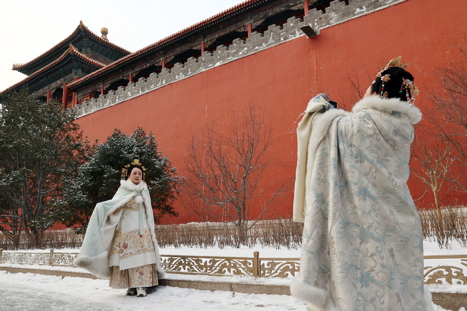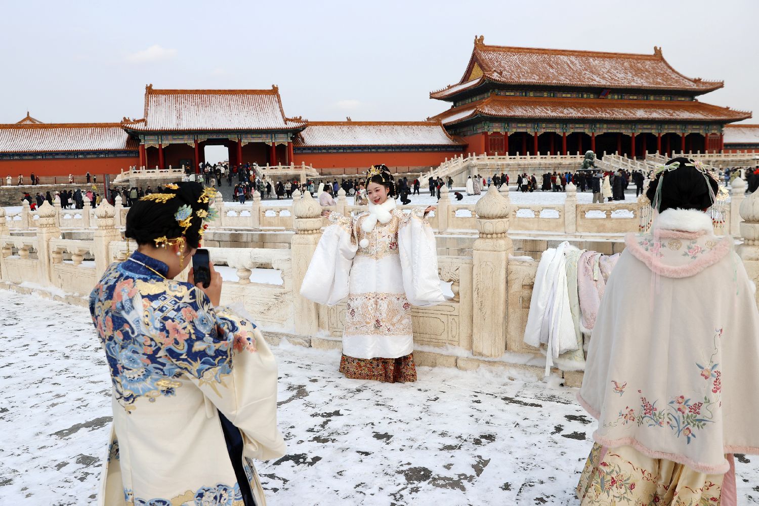 如今,身穿中国传统服饰打卡故宫已成为一种风尚。尤其当大雪落下,这座古老的宫殿便成了绝佳的“出片圣地”。人们身着华裳,在银装素裹的宫墙与飞檐翘角间驻足流连,仿佛从历史中走出的画面。 图年1月18日,雪后的故宫迎来了大批“盛装”年轻人前来打卡出片。李国庆摄