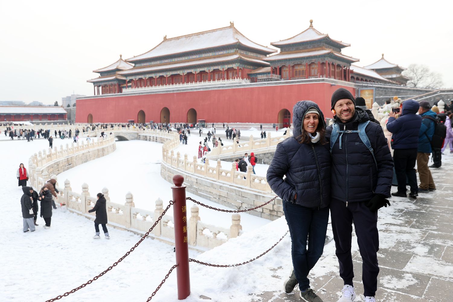 图为年1月18日,两位外籍游客在故宫午门前留影。李国庆摄
