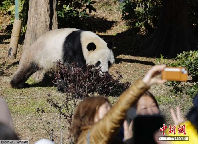 ▲当地时间12月16日,日本东京上野动物园,游客给大熊猫“蕾蕾”拍照。(图片来自中新网)