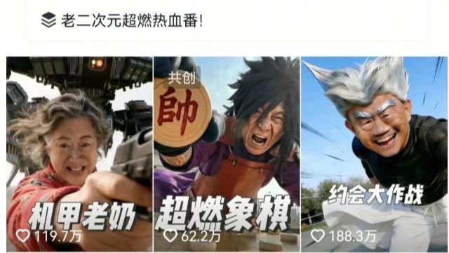 最初,是一条名为《大妈vs大爷 超燃特效斗地主》的视频意外获得了远超预期的流量。这次成功让老皮和团队敏锐地捕捉到了机会。他们迅速跟进,在短时间内集中创作了一批以老年人为主角、融合动漫游戏元素的短片。“斗地主大战”“广场超能力”等爆款相继出现,形成了一个鲜明的内容系列。