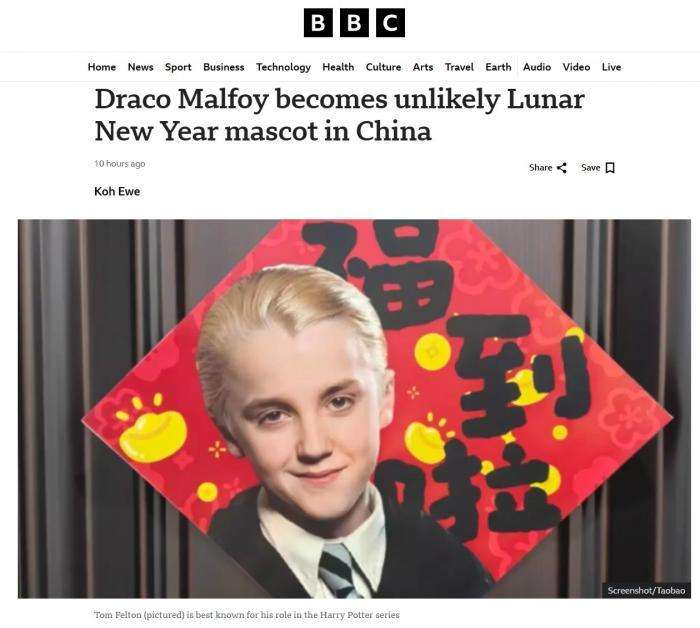 【东西问客户端2月16日电】今年春节,一个看似“不太对味”的形象出现在不少中国家庭的门口——《哈利·波特》里的斯莱特林少爷马尔福,被印在红底春联和“福”字上,成了年轻人争相转发的“新年吉祥物”。这一现象甚至引起BBC等外媒关注,被称为“一个意想不到的春节符号”。