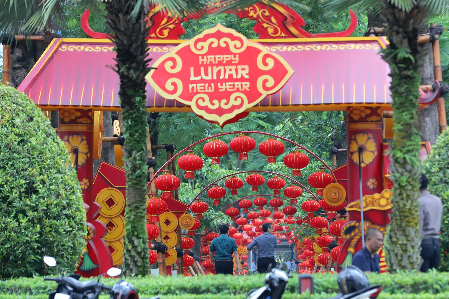 ▲当地时间2月10日,印度尼西亚雅加达街头布置春节装饰,红色元素点缀城市街景,春节氛围日渐浓厚。(图片来自中新社)