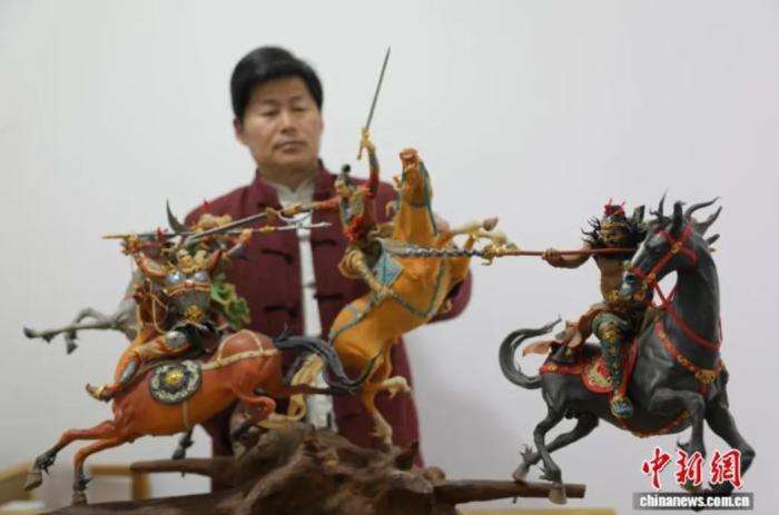▲颍淮面塑艺人高光彪创作的《三英战吕布》面塑作品。(图片来自中新网)