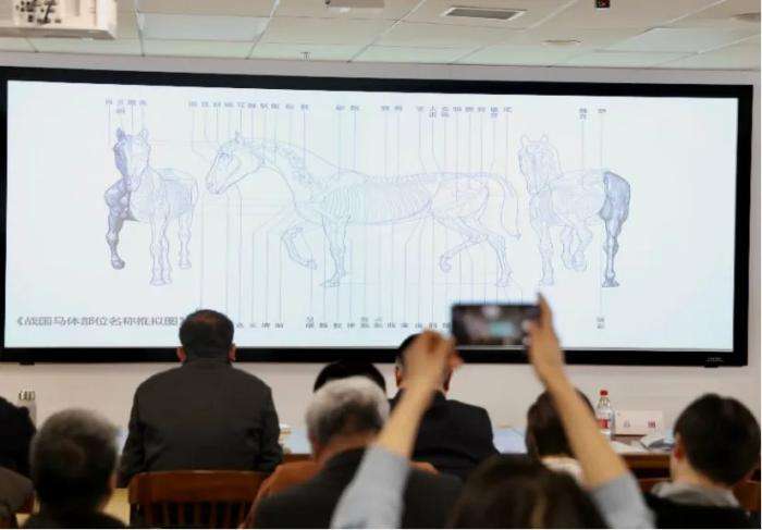 ▲在《清华大学藏战国竹简(拾伍)》暨校释、英译系列成果发布会上展出的战国马体部位名称推拟图。(图片来自中新网)