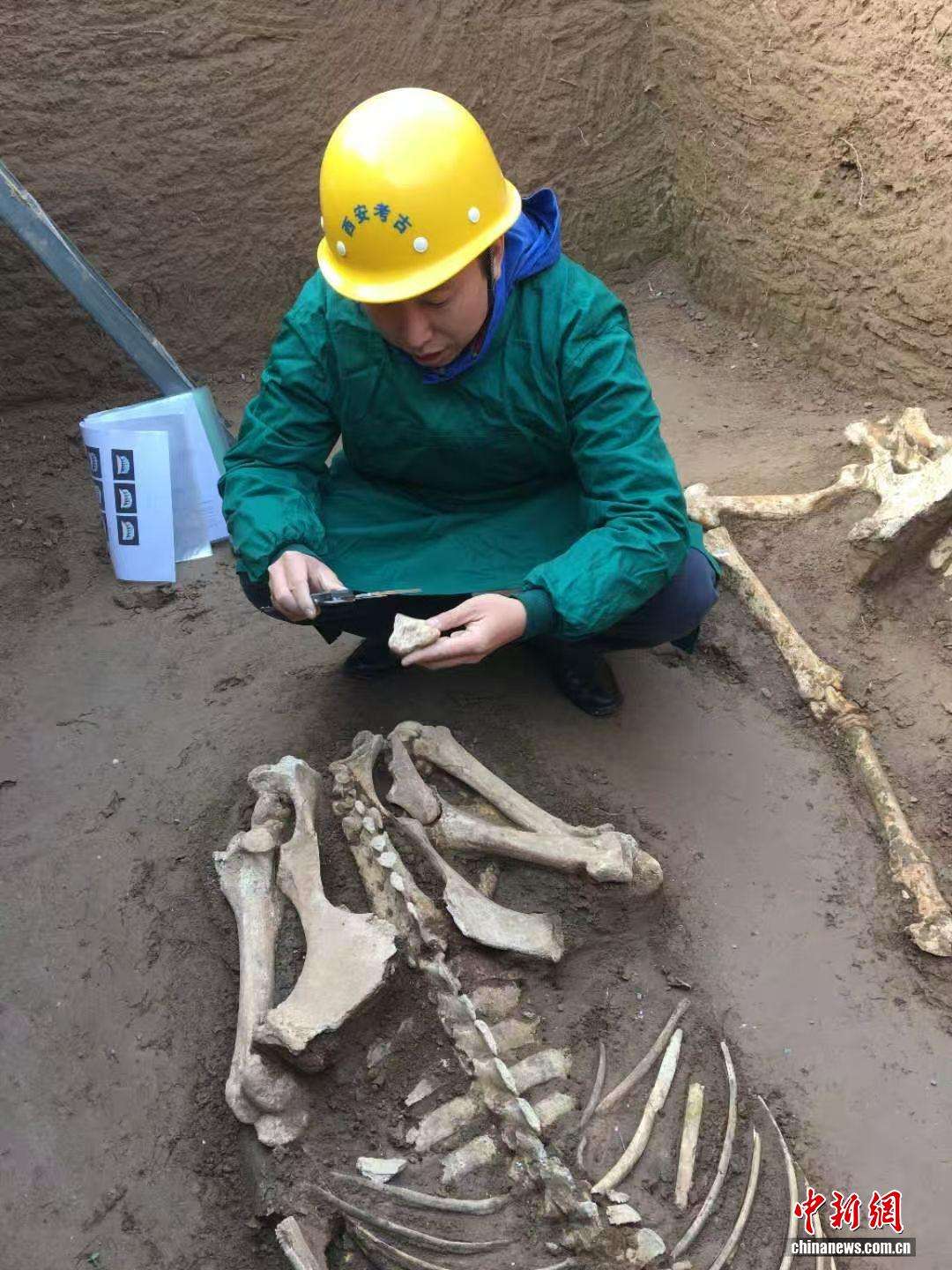 ▲吕鹏在对陕西考古遗址出土马骨进行现场鉴定。(图片来自受访者)