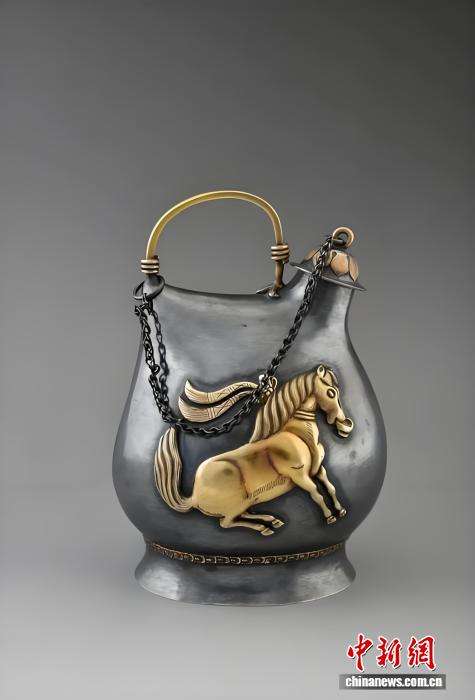 ▲陕西何家村遗址出土唐代舞马衔杯铜壶。(图片来自受访者)