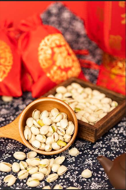 开心果也被叫做"绿色黄金",在世界各地都被看作是慷慨好客的象征。在中国,开心果形似笑脸,寓意吉祥。这个讨喜的名字,让它成了中国人春节期间馈赠亲朋的必备年货,象征着健康、幸福和好运。