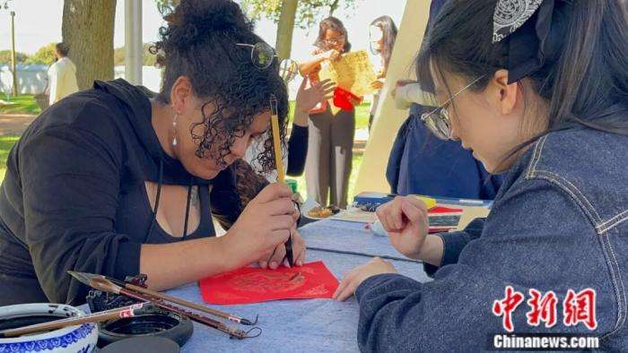 ▲当地时间2025年4月17日,南非民众在开普敦伊兹科(Iziko)博物馆体验写“福”字。中新社记者孙翔摄