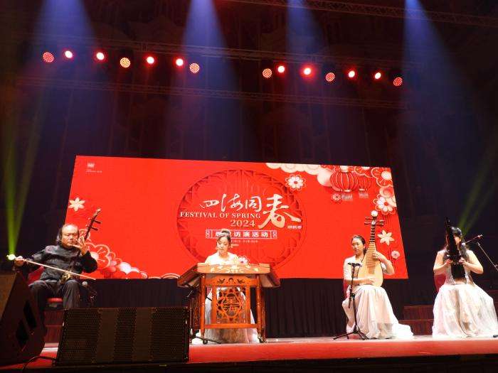 ▲当地时间2024年2月21日,2024年“四海同春”访演活动在悉尼上演。图为民乐演奏《剪羊毛》。中新社记者顾时宏摄