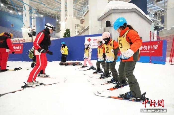 ▲2026年2月3日,上海耀雪冰雪世界迎来寒假客流高峰。图为寒假期间,小朋友学习滑雪。中新社记者张亨伟 摄