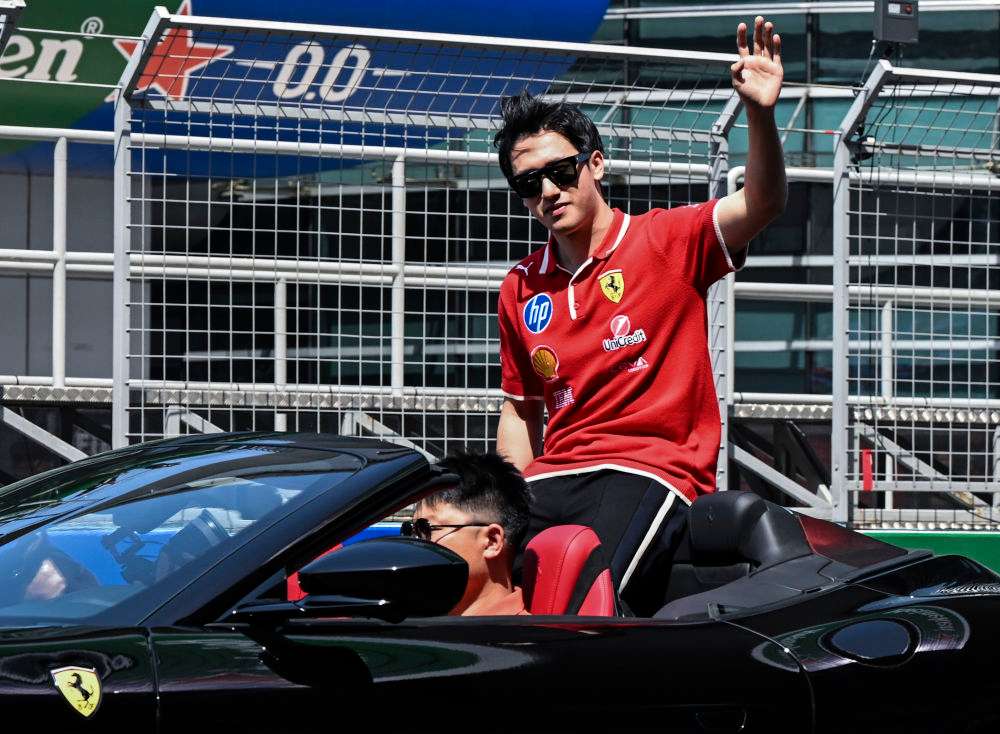 ▲2025年3月23日,法拉利车队储备车手周冠宇参加车手巡游仪式。当日,世界一级方程式赛车锦标赛(F1)中国大奖赛车手巡游仪式在上海国际赛车场举行。(图片来自新华社)