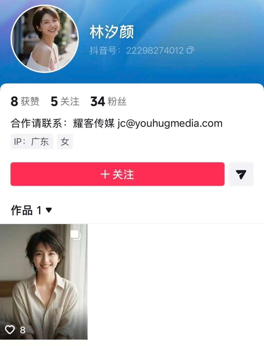 据介绍,耀客推出的两名虚拟艺人秦凌岳(男)与林汐颜(女),定位为“赛博演员”。目前,两人已在社交媒体抖音、小红书开通账号,宣称将分享“日常”并与网友互动,强调“不留电子眼泪”。