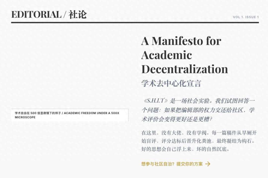 所谓“底刊”,自然是坊间戏称,对标的是国内外学术圈大名鼎鼎的“顶刊”。这些自发创立的期刊网站从名字上就充满了反讽与嘲弄,比如《S.H.I.T》《Rubbish》等。不过,如果点开这些网站细细研究,却会看到潜藏在背后那颗不安于“躺平”的“雄心”。《S.H.I.T》首页赫然写着,这里“没有大佬,没有学阀”,“我们试图回答一个问题:如果把编辑部的权力交还给社区,学术评价会变得更好还是更糟?”完全超出常规的选题,却有貌似极其符合当下学术论文风格的体例,是这类“底刊”的共同特征。